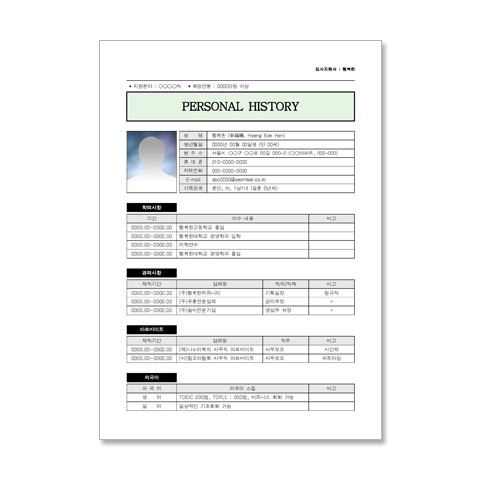 경력직 이력서, 자기소개서의 일반적 형태입니다. 디자인이 깔끔하고 복잡하지 않아 개인의 편집 능력에 따라 얼마든지 변형 가능합니다.